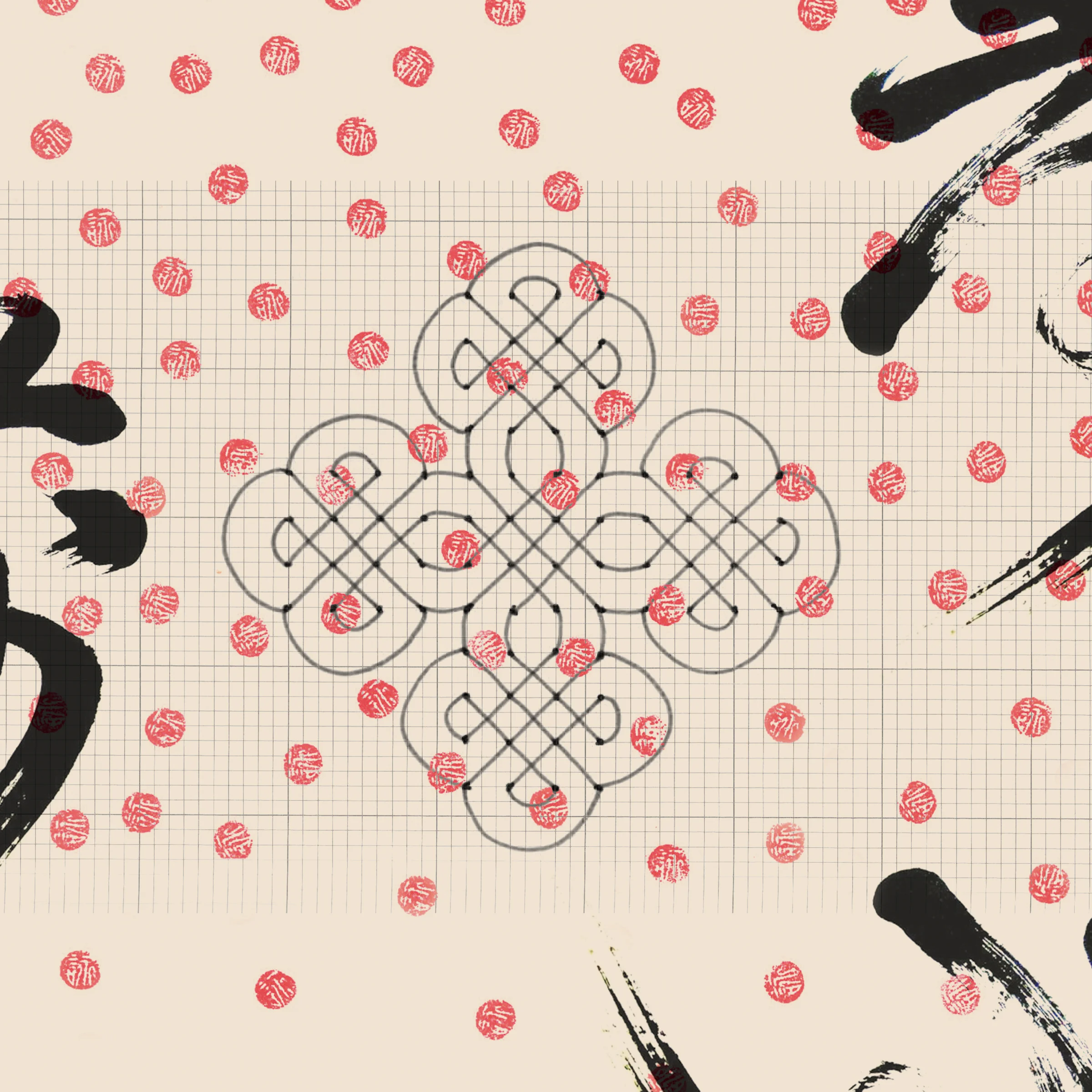 Emily has always been drawn to the red seals stamped on to each piece of artwork by the artist, as it's a work of art in itself. These intricate signatures are often enclosed in a square or circle, always in red. She received a necklace with her Chinese name carved on the bottom, which is also a stamp. Using this stamp, she created a uniform pattern that creates an interplay between the fluid brush strokes found in traditional Chinese characters.