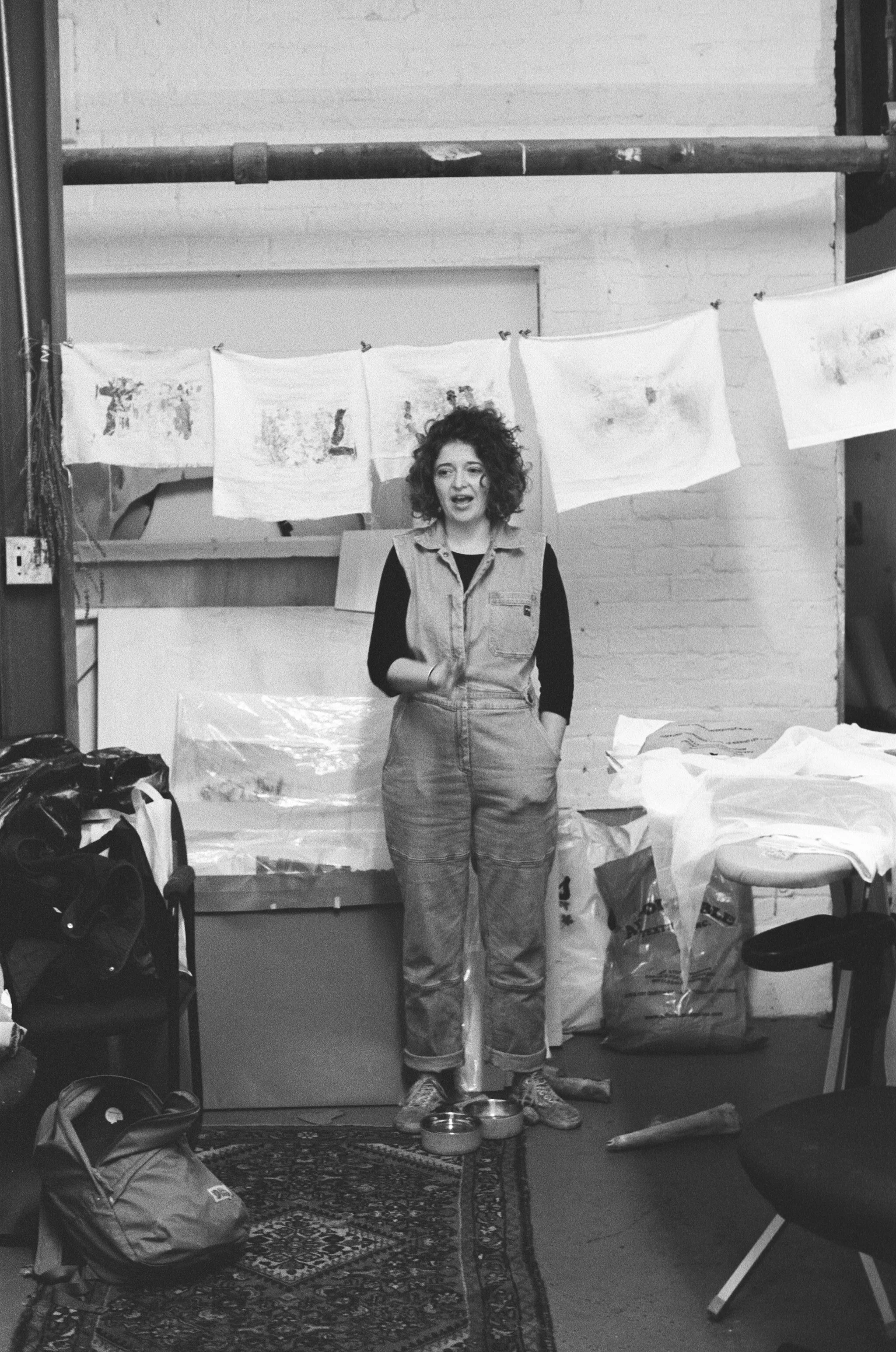 Studio hangs with Talia and Yoni means paint covered shoes and boiling carrots to make orange dye.